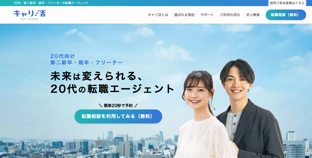 キャリ活は、20代・第二新卒・既卒に特化した無料の就職・転職エージェントです。