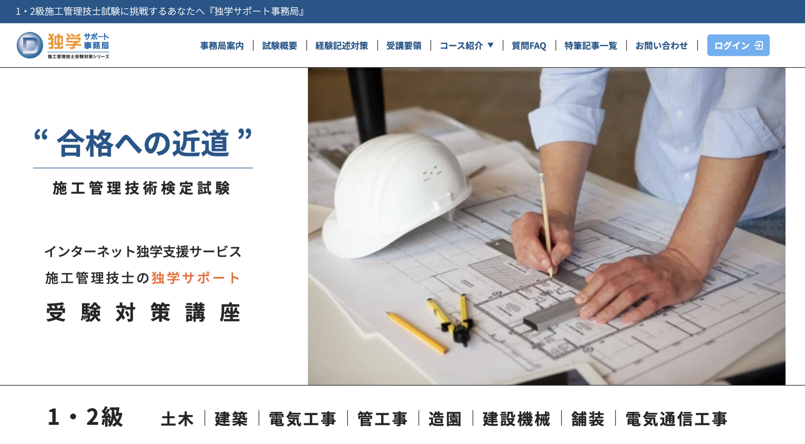 独学サポート事務局は、1級・2級施工管理技士試験の実地試験(工事経験記述)対策に特化した受験サポートサービスです。