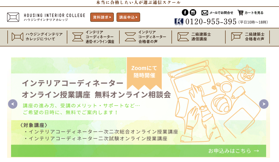 ハウジングインテリアカレッジは、インテリアコーディネーター資格・二級建築士資格に特化した通信・オンライン講座を提供する資格スクールです。