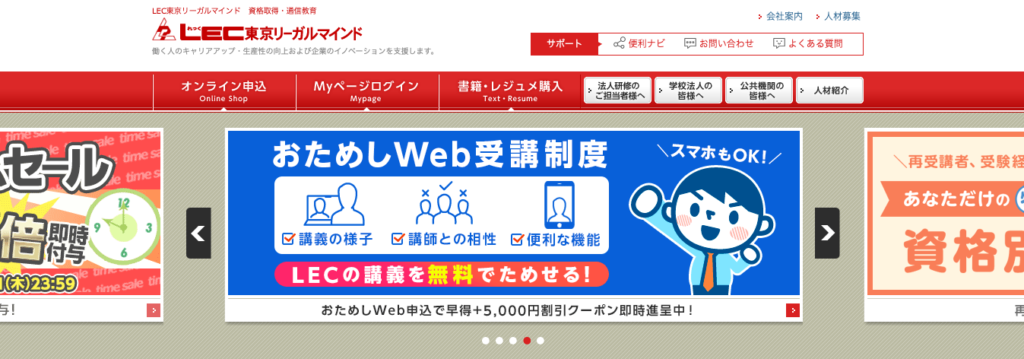 LEC東京リーガルマインド公式サイト国家資格全般を王道で学べる老舗スクール。司法・法律系から不動産・公務員まで対応範囲が広く、教材量・合格実績重視の人向け。通学・通信・オンラインなど学習スタイルも豊富。