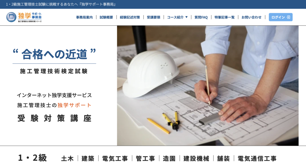 独学サポート事務局は、施工管理技士など建設系国家資格の実地試験対策に特化したサービスです。