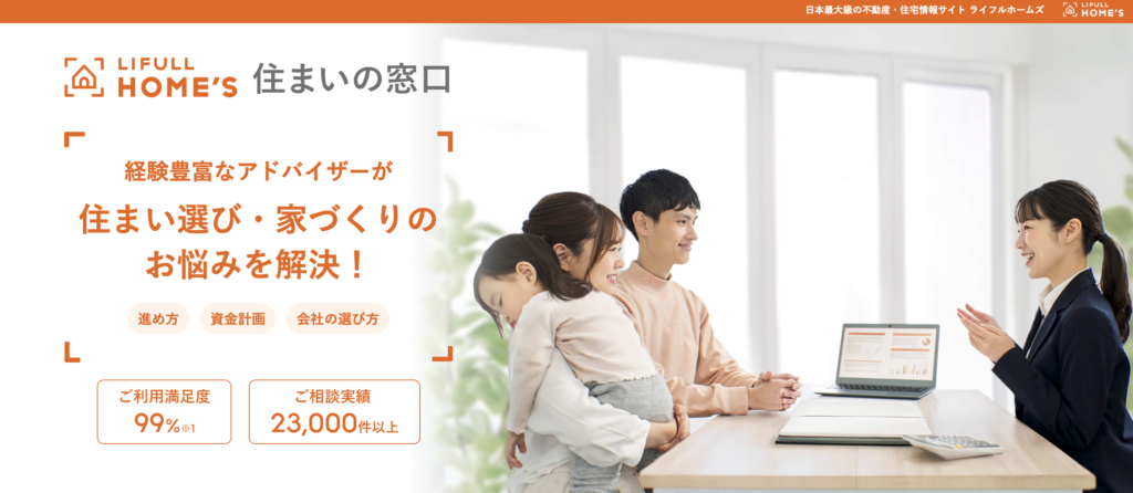 LIFULL HOME’S 住まいの窓口は、日本最大級の住宅情報サイト「LIFULL HOME’S」を運営するLIFULLグループが提供する無料相談サービスです。