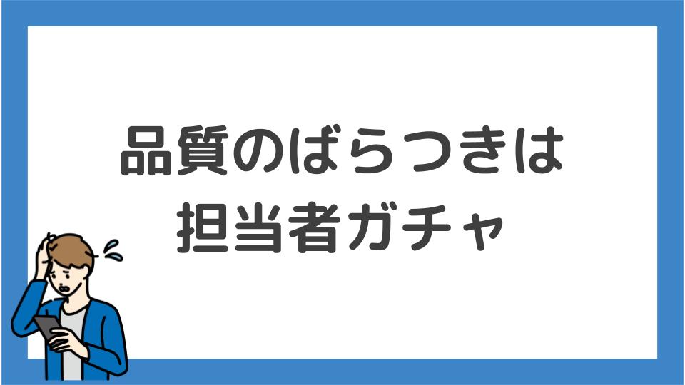 | 施工品質均一性 | ★★★☆☆ | 担当者ガチャあり・良い口コミと悪い口コミが混在 |