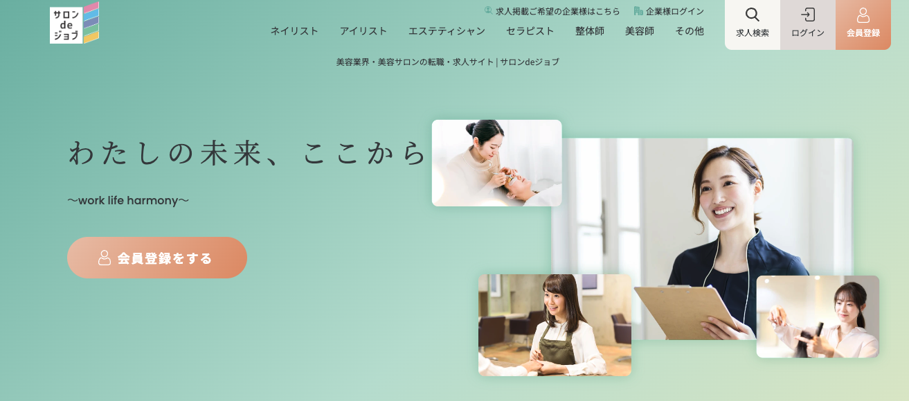 サロンdeジョブは、美容業界で働くネイリスト・アイリスト・美容師・エステティシャンなどが、自分に合ったサロンへキャリアチェンジしたい場合に、非常に有力な転職支援サービスです。